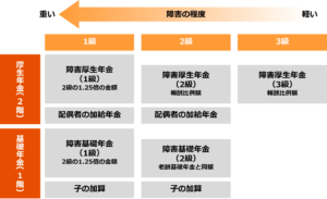 障害厚生年金には1級から3級までありますが、障害基礎年金は1級と2級しかありません。
